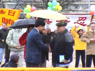 我们也非常清楚,你们(法轮功)在中国领土上被迫害。我们坚决反对一切镇压,一切对人民的压迫。为此,我们决定向你们颁发褒奖。”
