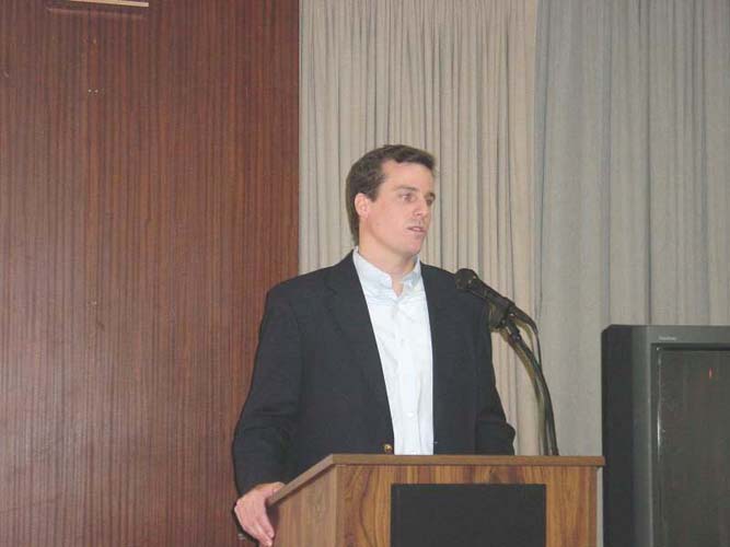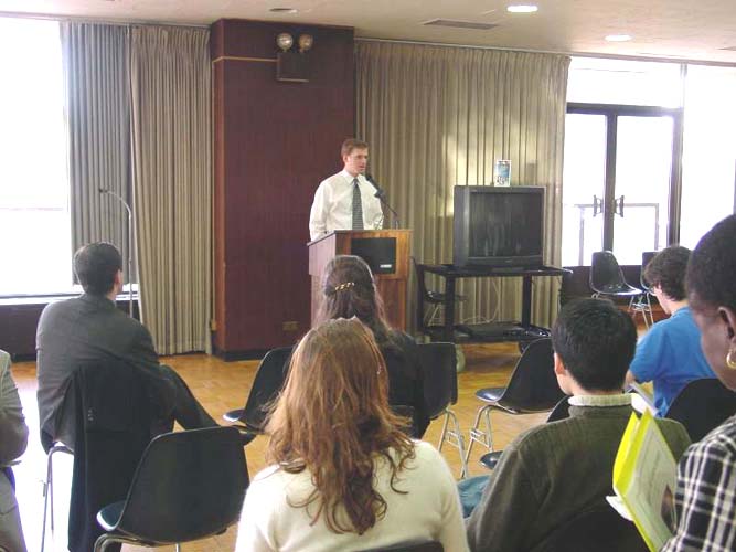 不久前从天安门广场请愿归来的法轮功学员李维.布朗迪(Levi Browde)主持了招待会。美国国家新闻爱米奖(National News Emmy Award)获得者,资深新闻记者丹尼.史彻特(Danny Schechter)介绍了他调查收集到的法轮功受迫害的情况和他根据这些资料写的著作《法轮功挑战中国》(Falun Gong's Challenge to China)。招待会上还放映了丹尼.史彻特制作的同名新闻记录片。丹尼.史彻特在讲演和放映记录片后回答了观众的问题。