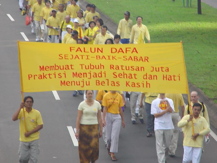 | 印尼文: | 法轮大法 真善忍 使壹亿人身体健康 心性提高 |