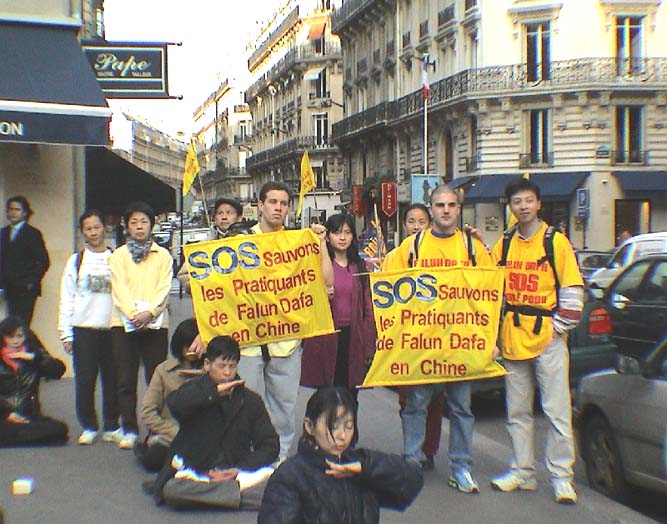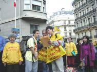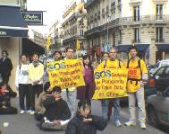 | 参与环绕巴黎100公里SOS步行的学员 | 步行者宣读声明要求江XX政府停止镇压法轮功 |