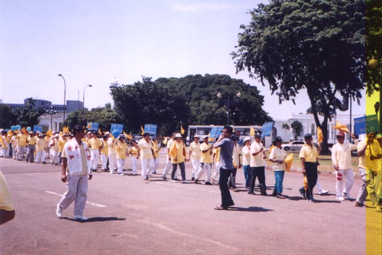 台湾学员参加印尼法会的体会:雅加达省长特派代表到法会致词祝贺;我们深入市区洪法,印尼人多接受材料,但华人表现各异;市区游行虽受阻,但广播和报纸纷纷报导了中共蛮横无理干预法轮功活动的事,揭露了邪恶。