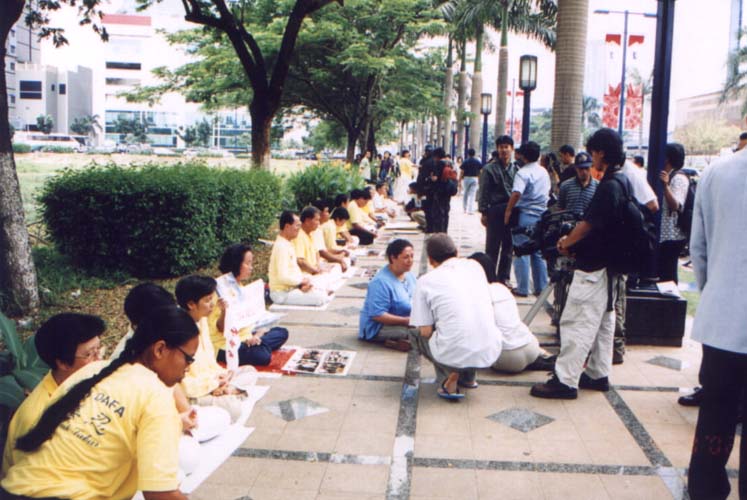 学员宣读声明制止江泽民对法轮功的恐怖屠杀学员的呼吁引起了媒体关注,记者采访学员