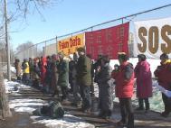 2月6日,我们在法轮大法日,赴京证实大法,遭受拳打脚踢,在狱中讲真相,绝食十多天后恶警们大概看我难以支撑,怕出人命担法律责任,便把我塞进警车,拉到火车站强迫我上了北去的列车。