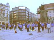来自英格兰、德国、捷克和斯洛伐克共和国的国际法轮功修炼团体,再加上来自台湾的70多位学员,引起了布拉格市民及许多路过旅游者的极大兴趣。