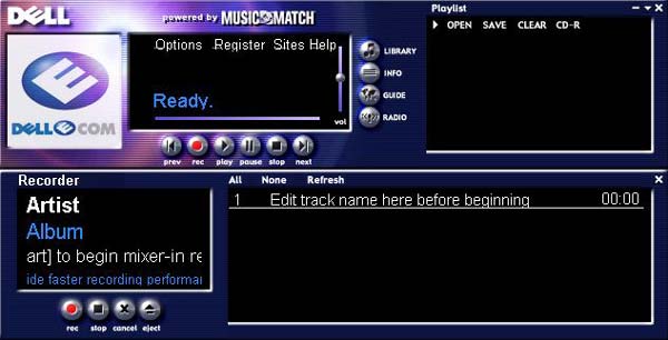 MUSICMATCH Jukebox是一种很流行的音乐播放软件,使用它的录音功能(Recorder)可以很方便地将任何正在播放的音频文件(如RA/RM/RAM等)转录成你想要的MP3文件,它也可以将正在播放中的RM/RAM,MPG等录像文件的声音部分转录为MP3文件。
