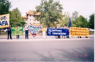 2002年3月28日,澳洲首府领地的立法议员嘉利塔克,国际特赦组织澳洲分部负责人,和首府贸易及劳动协会的负责人来到中国大使馆门前,与澳洲当地学员一起展开“真善忍”的横幅。