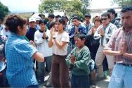 【明慧网2002年4月18日】今年三月,随着正法进程的深入,我们决定在秘鲁19个较大和较有影响的省、市进行洪法讲真相活动。基本程序是:每到一个城市,我们先利用媒体(电视台,电台,报刊)向各界人士正面宣传介绍法轮大法。然后在城市的中心广场向众人展示五套功法,并向各地市政府的市长递交法轮大法真相资料和大法书籍。同时在所到城市的电台或电视台留下一套西班牙语的师父教功录影带、炼功音乐和从互联网下载西班牙文版的大法书籍。并广播告知可以索取复印、翻录或从大法网页中下载。这次活动历时20天,且有秘鲁籍大法弟子始终一路同行。