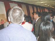 日内瓦大学共有5000多学生,在画展期间很多中国学生前来了解法轮功真相,之后改变了他们以前对法轮功的不正确观念。还有的说:“好极了,在这里举行中国画展,弘扬中国文化艺术,为中国人争光。”我们每天中午、下午两次在学生休息时,用扩音喇叭向学生和教师介绍法轮功及长春大法弟子通过有线电视台介绍法轮功真相后,江泽民犯罪集团穷凶极恶地下了“杀无赦”的命令。然后章翠英又讲述了在中国监狱的恐怖遭遇。