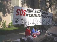 从4月19日星期五傍晚开始,旧金山大法弟子开始在中领馆前昼夜集体整点发正念,到星期六上午及至晚间,中领馆前大法弟子已达上百人。