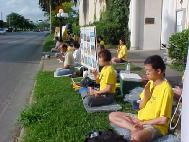 旧金山湾区弟子从4月19日星期五傍晚开始连续60小时在中领馆前整点发正念。