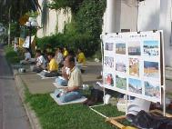 洛杉矶大法弟子从4月20日下午1时起在领馆门前48小时持续发正念,抓住万载难逢的历史机遇,铲除邪恶之首,为法正人间到来之前开创一个和平环境。恰逢中领馆举办一南加地区科技交流会,前来参加活动的学人学者在领馆进进出出,不少人都过来看展板。有一个年轻学人认为江氏集团对法轮功群众的镇压是政治迫害,并三番五次地领朋友来拿光盘。