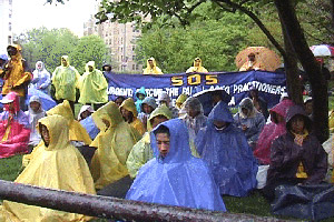 天阴沉沉的,终于,在午间,下起了雨,伴随着寒冷。大法弟子们,端坐不动,立掌除恶;