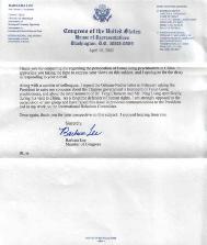 美国国会议员芭芭拉.李给法轮功学员的回信