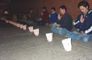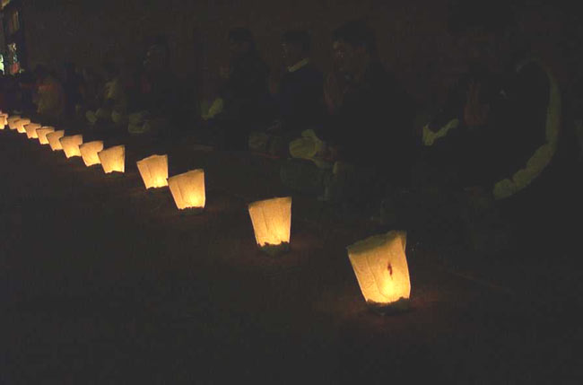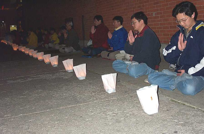 晚上,一盏盏烛光灯整齐地排列着,代表着学员们对被迫害致死的同修们的悼念。整个纪念活动到晚上9时结束。