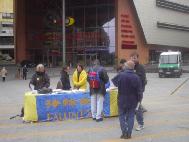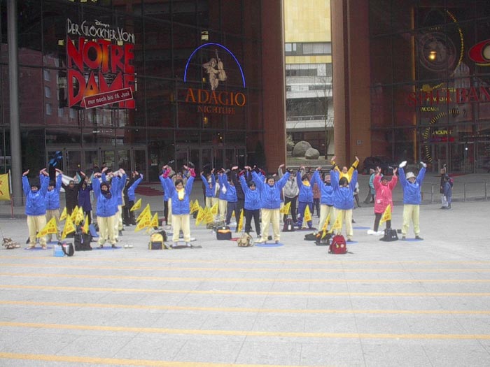 【明慧网2002年4月7日】为了让德国人民了解江氏流氓集团对法轮功的疯狂迫害,唤起人们的正义良知。今天在德国几个城市,如首都柏林(Berlin)、沃尔夫斯堡(Wolfsburg)、戈斯拉尔(Goslar)等地同时举行了洪法信息日。来自美国、台湾、瑞典、瑞士、加拿大、英国和德国各地的大法弟子共同向这些城市和地区的人民讲清真象。在柏林,为了让更多的人了解真象,除了在行人川流不息的Marlene-Dietrich广场设立信息点外,学员还分成四路以SOS步行的方式穿越在大街小巷中。一位记者读了大法网页后,主动打电话找到联系人,要求对此次活动进行采访。在采访过程中,他和学员足足交谈了三个小时,并一直呆到活动结束。当和学员告别时,他再三道谢,并祝我们取得巨大成功。