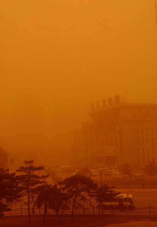 中央气象台上午11点钟发布的沙尘暴预报称,受强冷空气和蒙古气旋的共同影响,今天白天到明天,西北地区东部、华北中北部,包括北京和天津的部份地区,东北地区中南部将有沙尘天气,其中内蒙古中部和东部偏南地区、河北北部、辽宁、吉林西部和黑龙江南部等地的部份地区有沙尘暴或强沙尘暴,华北南部和黄淮的大部地区将有浮尘或扬沙天气。