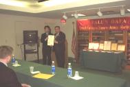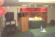 庆典仪式于下午两点钟开始。首先,学员代表致开幕词。他扼要介绍了法轮大法在新泽西州摩利斯县的洪传情况和自宣布首届摩利斯县“法轮大法周”以来所引起的社会广泛反响和支持;同时向数十位摩利斯县的国会议员,州参众两院议员,摩利斯县县议会,以及摩利斯县所属城市的市长和市议会对法轮大法的一贯支持表示衷心的感谢。