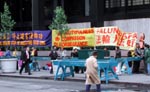世界日报4月30日纽约讯,中国大陆国家副主席胡锦涛从29日凌晨抵达下榻的华尔道夫饭店起,便一直受到抗议团体如影随形的跟随。短短一天的纽约行程,胡锦涛所到之处都可见到法轮功及西藏人士等代表在外守候,表达抗议及诉求,要求胡锦涛听听他们的心声,也让胡此行在转换参访据点时,屡屡遇到尴尬场面。