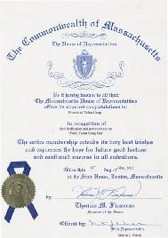 马萨诸塞州众议院褒奖李洪志先生和法轮大法
