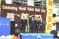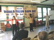 5月11日,纽约市、康州、新泽西州等地大法弟子和法轮功支持者一百多人喜气洋洋地在纽约布朗克士区开始了为期3天的庆贺世界法轮大法日系列活动。