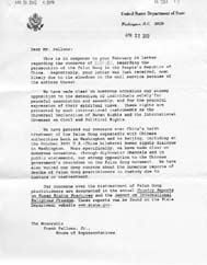 美国国务院致信国会众议员重申强烈反对中国(江泽民)镇压法轮功