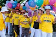 当然在游行中也提升了大家对法的认识。像发真相材料时,遇到对方不能支持大法时,认识到应该在法上更精进,以期有更智慧慈悲的心,来使对方了解真相。在身体疲乏时,体认到此行的意义,是为了唤醒世人尘封的善念,因此队伍中不论是八十岁的老太太以及四五六岁的小孩都不喊苦。