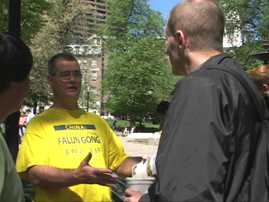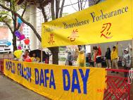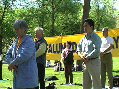 【明慧网2002年5月13日】在世界大法日来临之际,波士顿大法弟子从5月11日起举行集体炼功和向世人讲清真相的系列活动,庆祝恩师洪传大法十周年。