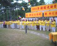 【明慧网2002年5月13日】欣逢法轮大法洪传十周年,台湾花莲地区大法弟子于五月十二日上午将横幅高挂于花莲县政府前石雕公园的会场,横幅以巨大的黄底红字书写着「2002年法轮大法日」及「停止虐杀中国法轮功学员」。入口处另高挂巨型气球和「真、善、忍」的横幅一字排开,会场气氛热闹非凡。