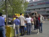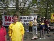 【明慧网2002年5月13日】今天,值大法洪传十周年及世界法轮大法日之际,来自德国北部各地区的大法弟子又一次聚集在首都柏林,向世人展示大法、讲清真相