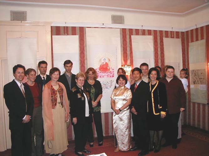 【明慧网2002年5月14日】5月10日,欢庆大法在世间洪传十周年之际,在奥地利艺术名城萨尔茨堡举办了章翠英在奥地利的第二场画展。画展在萨尔茨堡市中心的一家有名的豪华宾馆隆重举行。在开幕式上,章翠英向近百名来宾展示了源于真善忍的中国传统文化艺术的深邃内涵。并通过自己在中国的亲身经历,向人们揭露了在中国江泽民集团对法轮功修炼者的迫害。当地的报纸发表了展览的公告,并派记者参加了开幕式。