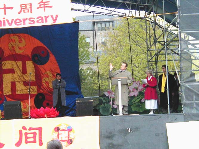 【明慧网2002年5月14日】今天在多伦多菲利浦广场(city hall)举行了“世界法轮大法日”和“加拿大法轮大法节”的庆祝活动。
