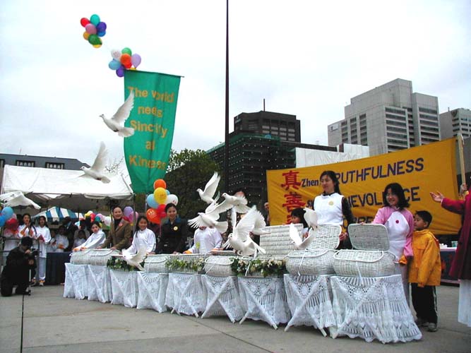 法轮功学员发言放飞和平鸽各民族舞蹈