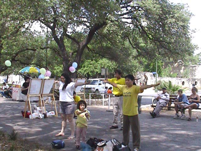【明慧网2002年5月15日】法轮大法在1996年传到圣安东尼奥市,这座美丽、宁静的城市从此沐浴在大法慈悲的法光之中。很多的东西方人士“俩俩相继而来,入道得法。”(《洪吟》.悟),社会各界也是大力支持。市政府四次给予法轮大法褒奖。迎接“世界法轮大法日”的庆祝活动,更为圣安东尼奥带来无限光辉。