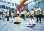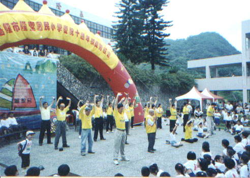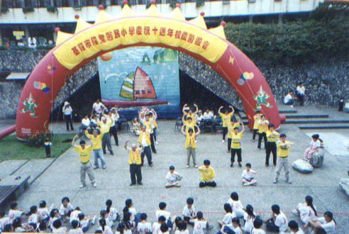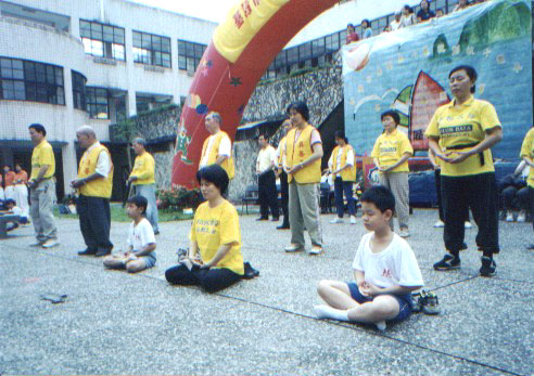 应台湾春晖之友的再次邀请,台湾学员向三百多春晖之友的志工、学生与家长介绍大法,一起学炼法轮功功法。