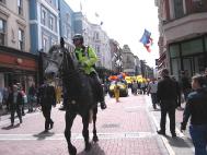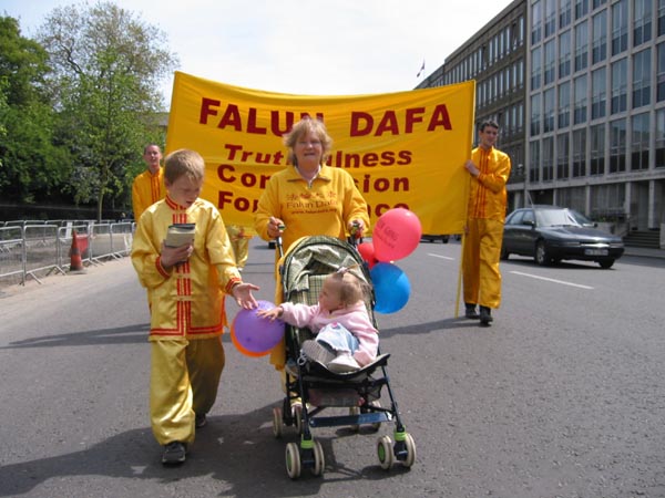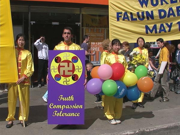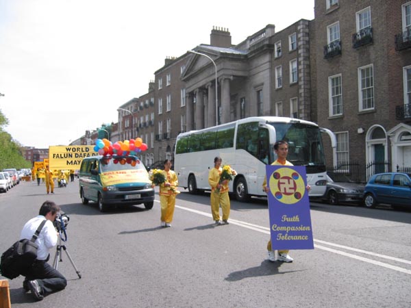 12日在首都都柏林(Dublin)大法弟子们整装出发,庄严的游行队伍在市中心的主要干道上行进了将近3个小时。法轮大法在大约六年前传入爱尔兰以来,特别是中国江泽民集团对法轮功迫害后的这几年,随着大法弟子们的不懈努力,爱尔兰全国上下从政府到百姓几乎尽人皆知,善良的爱尔兰人民对这部高德大法也表现出了积极正确的态度,这从营救赵明的过程中便可见一斑。