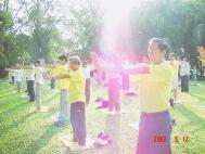 | 集体炼功 | 向师父问好 |