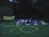 美国西雅图大法弟子在世界法轮大法日举行24小时静坐和烛光守夜,悼念大陆死难同修。