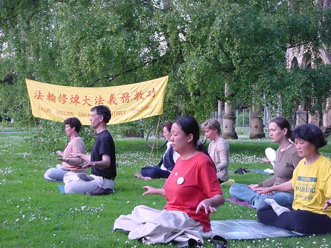 | 2002年5月13日世界法轮大法日,大法弟子整点发正念,铲除邪恶,学法提高心性。 | |