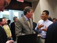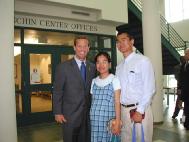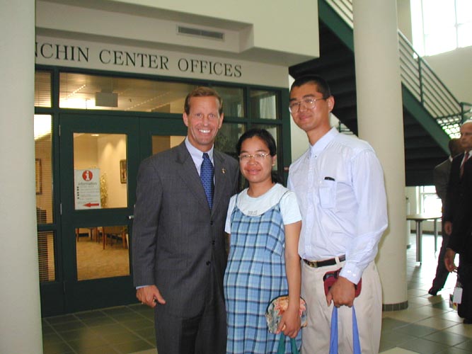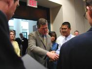 在退场时,我们主动同执行州长富兰克.布罗根交谈,并更深入的介绍了法轮功在中国国内外遭迫害的情况,他接受了大法资料并对学员们的遭遇深表同情,他祝我们好运并欣然同我们合影留念。