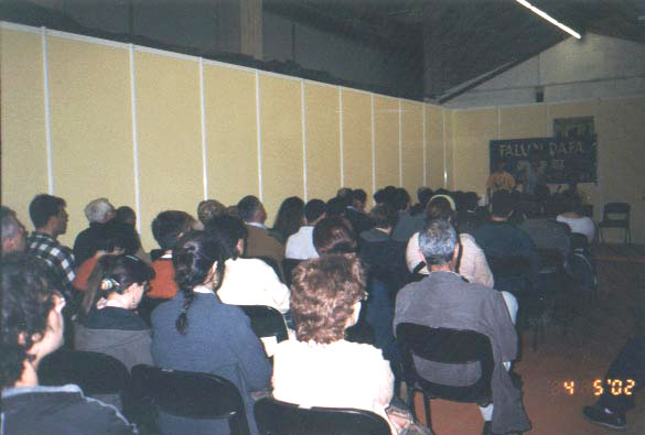 在博览会礼堂,连续两天举办了法轮大法介绍会,学员们向来自全国各地的参观者介绍法轮大法,并演示五套功法。博览会主办者之一MONTSE女士也在会上做了发言,她热情赞扬法轮大法给人们带来和平、健康,使人的精神得到升华。MONTSE女士并以博览会主办者的名义向与会者郑重推荐法轮大法。