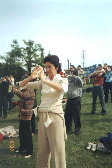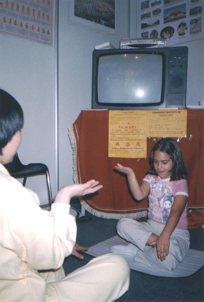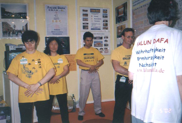 博览会组委会特许法轮功学员可以在博览会期间的任何时间使用会场内的任一露天场地。学员们在大厅外的草坪上教功,一批又一批的参观者加入学功的行列。在展位上的学员也是不知疲倦地一遍一遍演示五套功法,耐心地向参观者介绍法轮大法。参观者们对法轮大法表示了极大的兴趣,很多人当场就学起了功法,300多人报名参加九天讲法班。带去的两箱西文版《转法轮》、《法轮功》书籍仅前两天便销售一空。