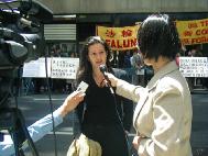 在刚刚过去的一周里,由200多人组成的游行队伍在曼哈顿庆祝了法轮功传播十周年纪念日,五彩缤纷的游行队伍由汽球、中国传统舞蹈和音乐组成。然而,当游行队伍经过中国城时,遇上了一群不速之客,这些人叫喊着由侨报和星岛日报的文章中使用的诽谤性口号,他们的喊叫及姿态如此恶劣,以致于不得不由一队警察来护卫着法轮功的游行队伍,而且我们不得不改变了预期的行走路线。在这种情况下,那群暴徒仍然追赶了几个街区,继续对我们大喊大叫。当我们在附近的公园平静地炼功时,他们还在咒骂我们,尽管当时有警察组成的人墙卫护着法轮功的炼功场地。