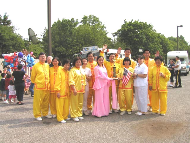 行进中,法轮功学员不断向观众招手致意并歌唱“法轮大法好”,队伍也不断响起热烈掌声。许多华人或招手致意或报以真挚的掌声。当法轮功学员的队伍走到主席台前时,主持人向人们介绍了法轮功的“真善忍”原则和功法的特点,接着学员们表演了两分钟的功法,观众们对精彩的表演再次报以长时间的掌声。