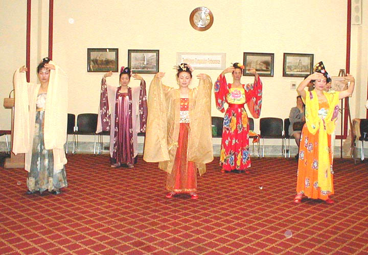 这次招待会是庆祝本月的“亚洲文化节”,同时感谢美国各界人士几年来对法轮功的不懈支持和帮助。在招待会期间,来自纽约的数位中西方女学员,身着中国古典的传统仕女服--唐装,向来宾们展现中国古老传统文化。学员们同时进行了五套法轮功功法的示范表演。