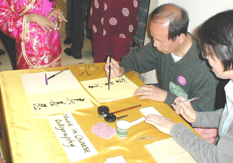 在唐装、功法表演的同时,还有画家章翠英女士的绘画作品展览,以及学员的茶道演示和书法表演,来宾们在品尝闻名世界的中国美食的同时,也获得了艺术上美的享受,对中国传统文化的博大精深有了进一步的感性认识。