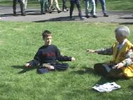 功学员在该公园的功法表演吸引了众多游客,不少前来学功。
