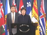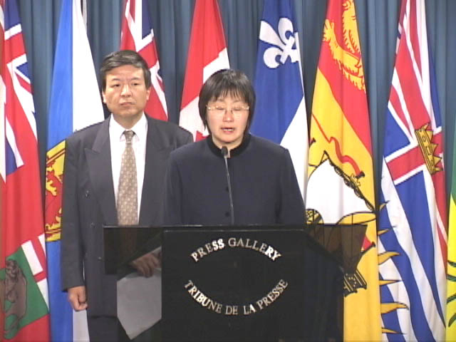时值丁关根来渥太华,法轮功学员在国会内举行新闻发布会揭露丁关根迫害法轮功