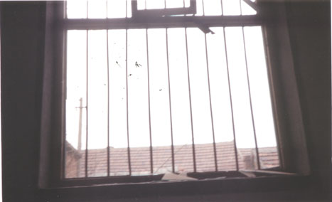 | 赵传文屋内,天花板被撬坏 | 赵传文家大院内,一片狼籍 | 赵传文家窗户 |