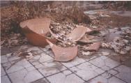 | 赵传武家,房门及窗扇都被摘掉 | 赵传文家窗户,窗扇被摘,玻璃被砸碎 | 赵传文家院内,面缸被摔碎 |