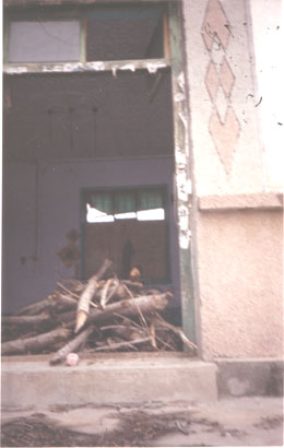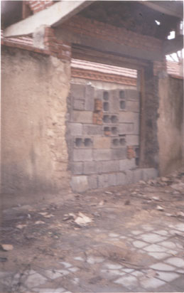 2000年11月份,赵传文因散发真相资料,被邪恶之徒发现,被迫流离失所。摩托车,三轮车又被镇政府的暴徒抢走。当镇政府的暴徒发现赵传文继续参加大法学员的交流会后,又再次闯入赵传文的家中,把他家中仅剩的全部财产抄走,家中的四季衣服,家具,车辆等物品也被邪恶之徒低价拍卖,七间房子的门,窗,大门全部摘走,门窗上的玻璃,面缸,也全被砸碎,把他家中的天花板撬开,更令人悲愤的邪恶之徒竟把赵传文家中大门摘走后,又用石头等把大门口垒上,现在赵传文的家中家徒四壁,一片狼籍。(如图)赵传文的父亲的三头猪被抢走,赵传武家同样也被他们抢劫一空。(如图)
